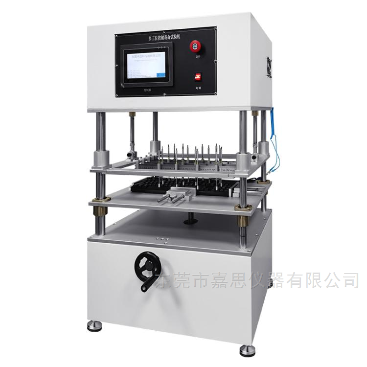 鍵盤按鍵壽命試驗機可測試手機、手提電腦按鍵及各種按扭、鼠標、鍵盤、搖控器等之按鍵、通訊類等硅膠按鍵及金屬彈片按鍵之使用壽命,對微動開關,橡膠開關等按鍵壽命均適用。